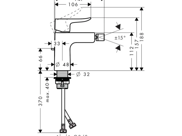 Die Armatur wird über flexible Anschlussschläuche (G ?) mit den Wasseranschlüssen verbunden (Größe: DN15)
