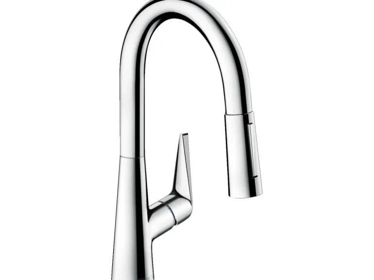 Durch die Ausziehbrause mit 2 Strahlarten gelingt auch das Befüllen von Töpfen in geringer Entfernung ohne Probleme (Strahlumstellung durch Tastendruck). Die MagFit Brausehalterung sorgt zusätzlich für eine einfache und nahezu geräuschlose Rückführung des Schlauchs. Die Geschirrbrause fixiert sich wieder mittig im Küchenmischerauslauf.