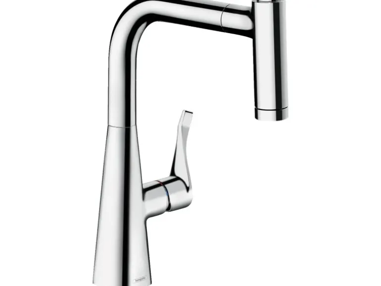 Durch die Ausziehbrause mit 2 Strahlarten gelingt auch das Befüllen von Töpfen in geringer Entfernung ohne Probleme. Die MagFit Brausehalterung sorgt zusätzlich für eine einfache und nahezu geräuschlose Rückführung des Schlauchs. Die Geschirrbrause fixiert sich wieder mittig im Küchenmischerauslauf.