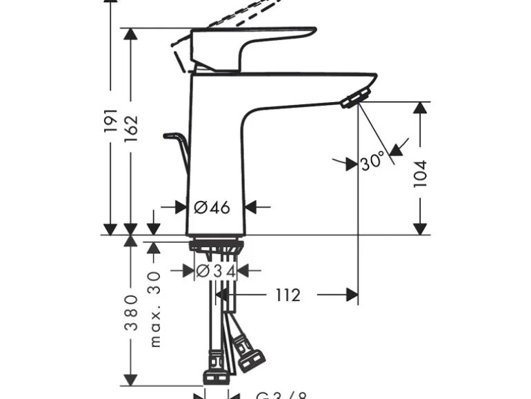 – Anschlussart: flexible G 3/8-Anschlussschläuche