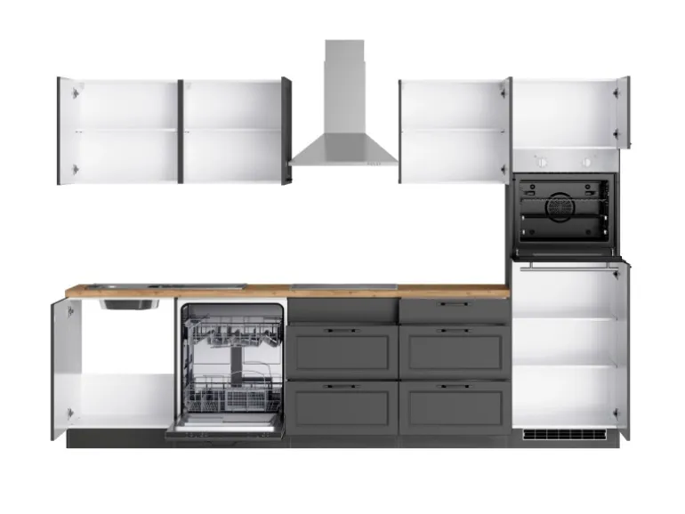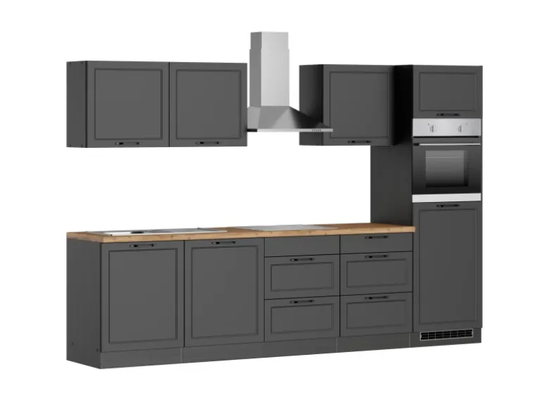 Held Küchen Küchenzeile Kempten 300 cm Grau/Graphit mit E-Geräten Induktion