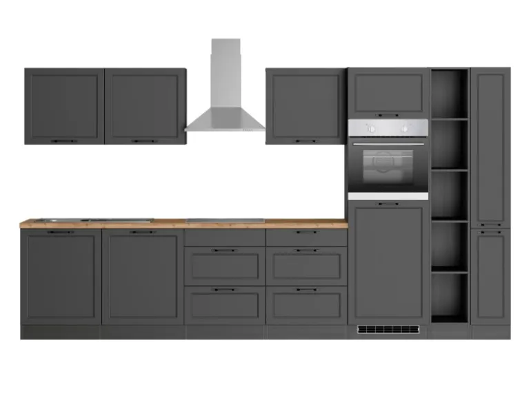 Held Küchen Küchenzeile Kempten 360 cm Grau/Graphit mit E-Geräten Induktion