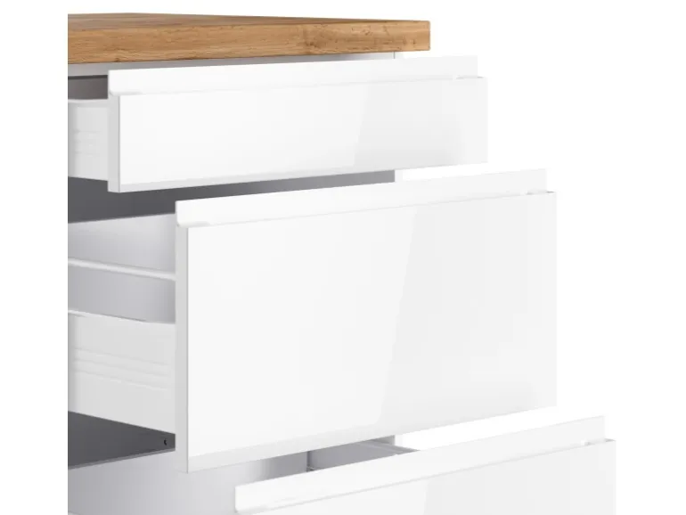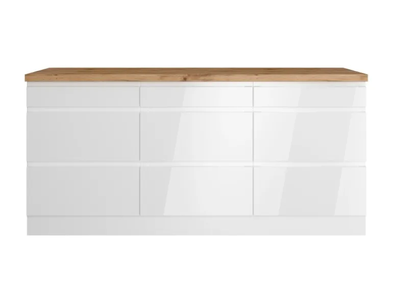 Die Küchenzeile wird Ihnen zerlegt und ohne Dekoration bis Bordsteinkante geliefert. Die Anordnung der Küchenelemente und die Anschläge der Türen sind somit für Sie frei wählbar. Die Arbeitsplatte wird ohne Ausschnitte geliefert. Technische Änderungen und Irrtümer vorbehalten