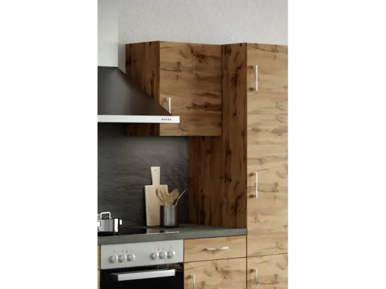 Die Küchenserie Sorrento besticht durch ihre 4 absolut trendstarken Dekorkombinationen, in denen immer das ausdrucksstarke Eichedekor eine entscheidende Rolle spielt. Durch eine Vielzahl an Zeilen- und Winkelkombinationen, die außerdem durch eine große Auswahl an Ergänzungsmöbeln komplettiert werden, ergibt sich ein breites Spektrum an Einrichtungsmöglichkeiten. Möchten Sie Ihren Backofen lieber autark in einem Hochschrank untergebracht haben? Benötigen Sie einen großzügigen Kühlschrank mit integriertem Gefrierschrank? Lagern Sie Ihre Vorräte gern in Auszügen und Apothekerschränken? Alle Schränke sind flexibel aufzustellen und die Türen sind wahlweise rechts oder links montierbar. Entscheiden Sie selbst- hier bleiben keine Wünsche offen.