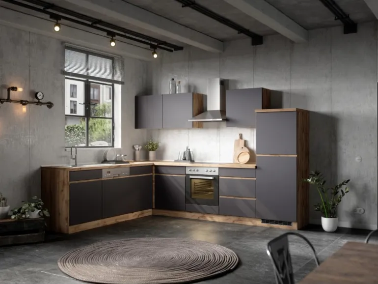 Vicco Fame-Line Eckküche Anthrazit Landhaus/Goldkraft Eiche 227 x 287 cm AP Marmor ohne E-Geräte
