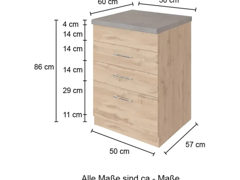 Held Möbel Küchen-Kochfeldumbauschrank Sorrento 60x85x60cm 2 SK 1 AZ Weiß-Wotan.