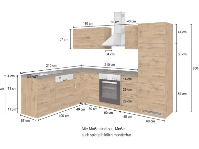 Held Möbel Küchenzeile Sorrento 210/ 270 cm Wotaneiche o. E-Geräte Winkel