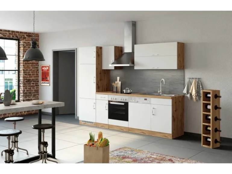 Die Küchenserie Sorrento besticht durch ihre 4 absolut trendstarken Dekorkombinationen, in denen immer das ausdrucksstarke Eichedekor eine entscheidende Rolle spielt. Durch eine Vielzahl an Zeilen- und Winkelkombinationen, die außerdem durch eine große Auswahl an Ergänzungsmöbeln komplettiert werden, ergibt sich ein breites Spektrum an Einrichtungsmöglichkeiten. Möchten Sie Ihren Backofen lieber autark in einem Hochschrank untergebracht haben? Benötigen Sie einen großzügigen Kühlschrank mit integriertem Gefrierschrank? Lagern Sie Ihre Vorräte gern in Auszügen und Apothekerschränken? Alle Schränke sind flexibel aufzustellen und die Türen sind wahlweise rechts oder links montierbar. Entscheiden Sie selbst- hier bleiben keine Wünsche offen.