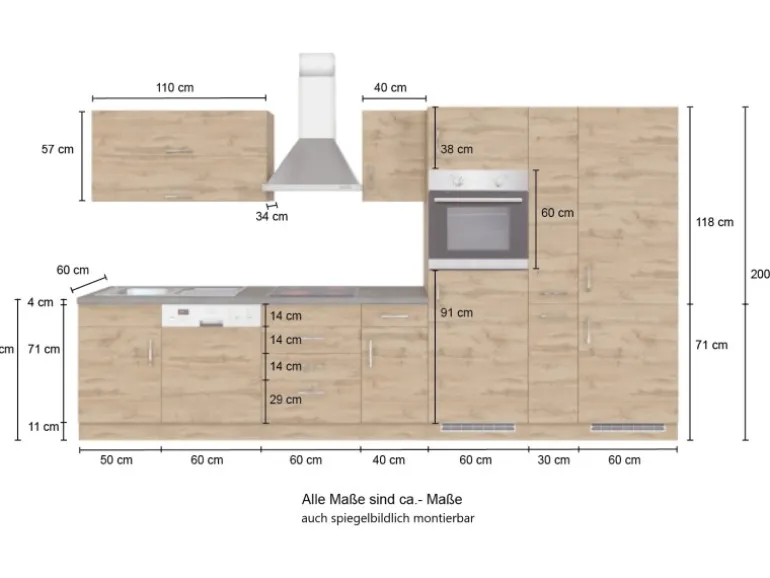 Held Möbel Küchenzeile Sorrento 360 cm Wotaneiche-Wotaneiche