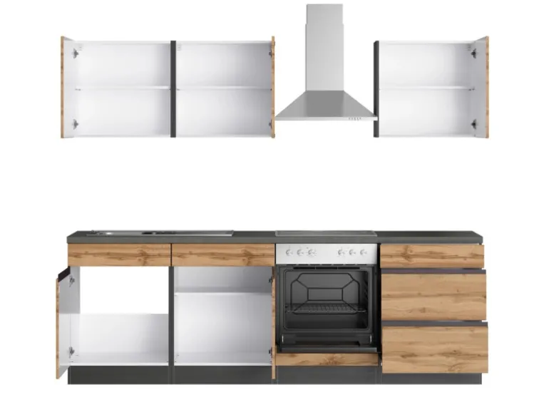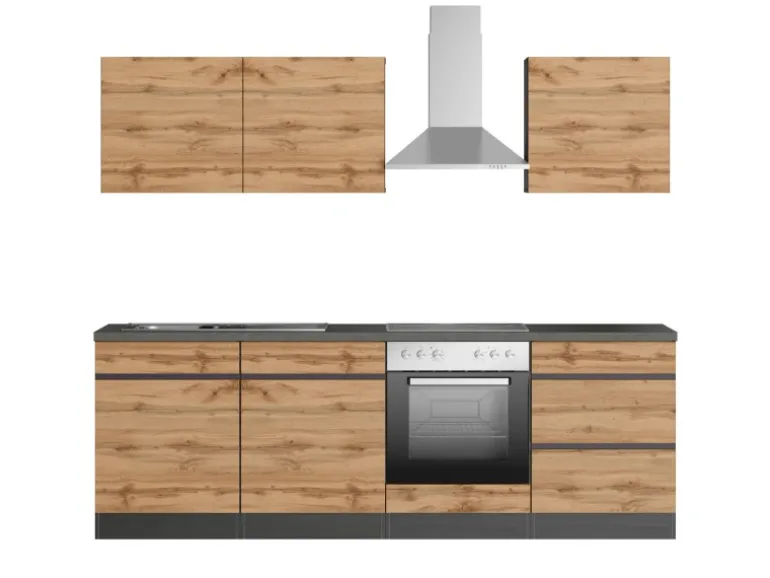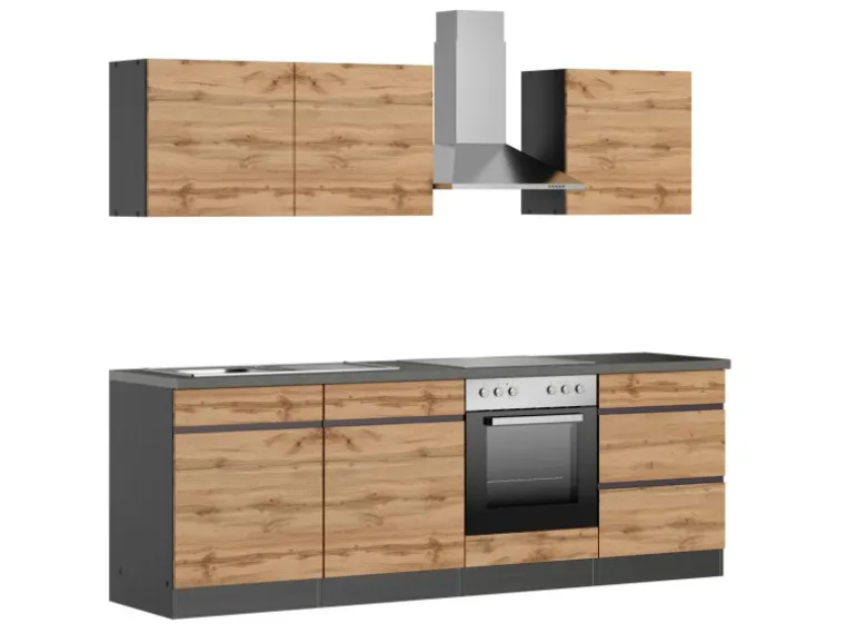 Die Arbeitsplatte wird ohne Ausschnitte geliefert. auch in Graphit / Wotaneiche
