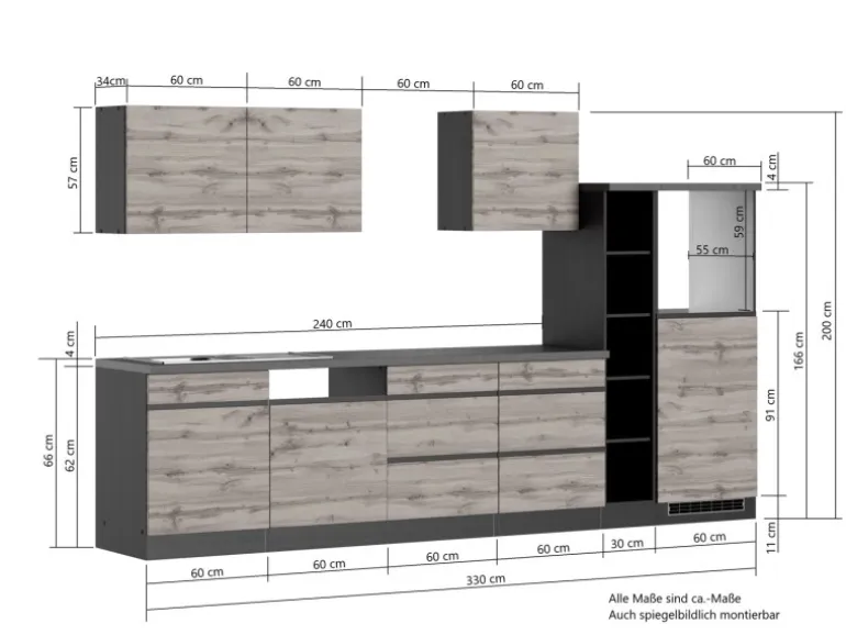Maße: (B x H x T) 330 x 200 x 60 cm