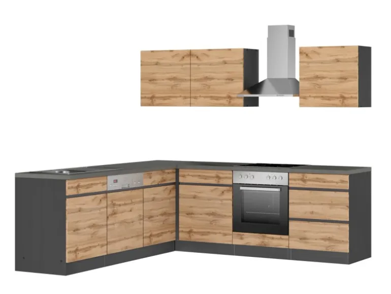 Zweifarbige Winkelküche mit 86 cm Arbeitshöhe