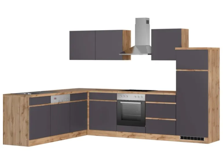 Zweifarbige Winkelküche mit 86 cm Arbeitshöhe