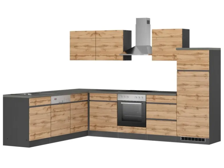 Zweifarbige Winkelküche mit 86 cm Arbeitshöhe