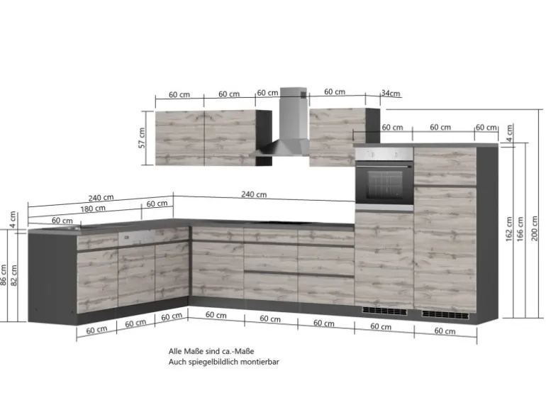 Maße: (B x H x T) 360/240 x 200 x 60 cm