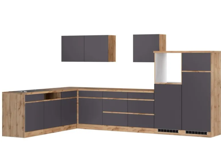 Zweifarbige Winkelküche mit 86 cm Arbeitshöhe