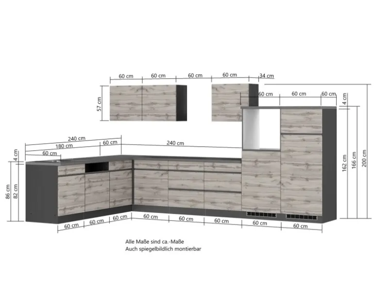 Maße: (B x H x T) 360/240 x 200 x 60 cm