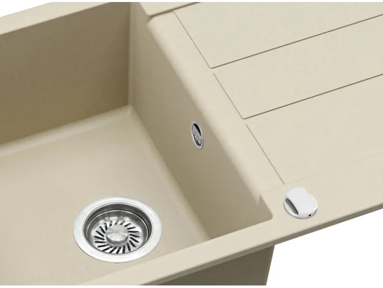 Helika Spülen werden aus natürlichem Quarzsand hergestellt, um einen hochwertigen Look und das Gefühl von echtem Stein zu bieten. Das Silicsana Granitmaterial besteht aus 80 % natürlichem Quarzsand und 20 % einzigartigem Kunstharz. Die Oberfläche der Spüle ist glatt, homogen und leicht zu reinigen.