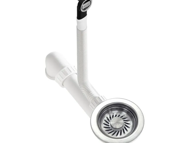 Im Lieferumfang enthalten: Siebeinsatz, Abfluss- und Überlaufset mit Siphon