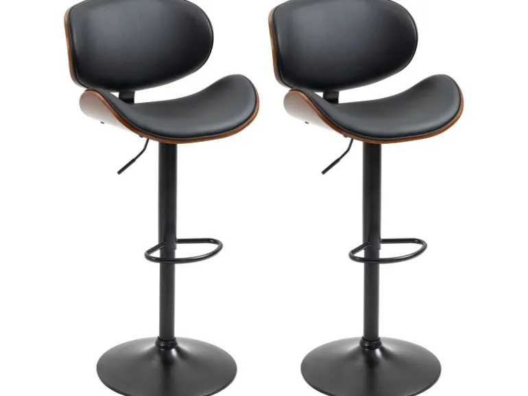 HOMCOM 2er-Set Barhocker Höhenverstellbar mit Fußstützen Schwarz 53 x 52 x 92-112cm