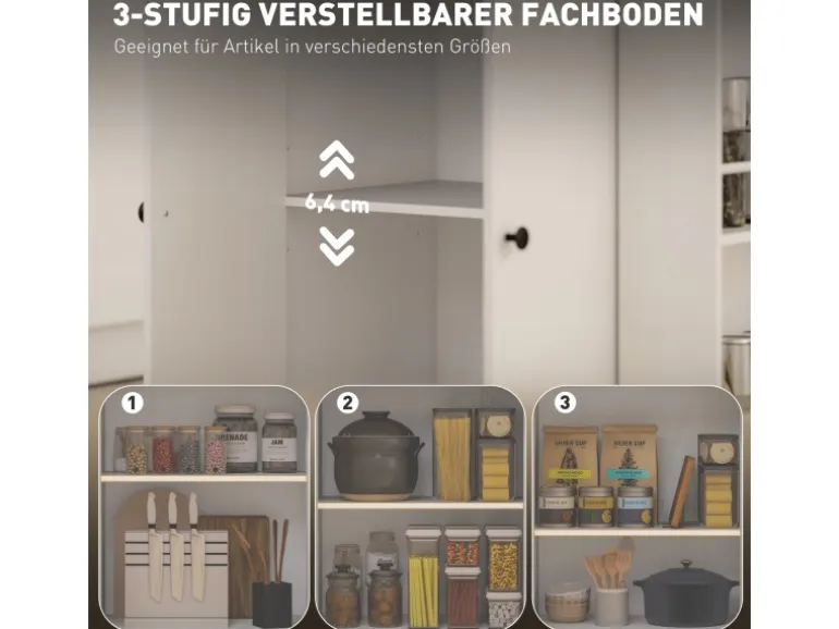 ● Dreistufig verstellbares Regal im Schrank für unterschiedliche Lagerbedürfnisse