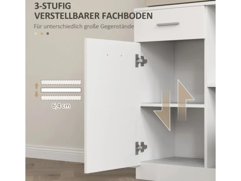 ● Modernes weißes Finish und silberne Griffe passen zu verschiedenen Einrichtungsstilen