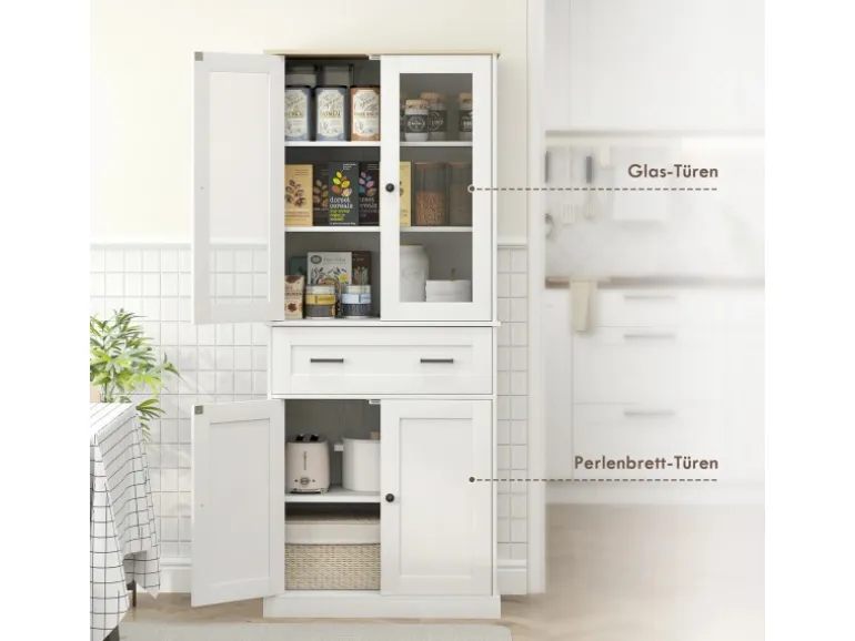 ● Die 3 Regale des Hochschranks bieten viel Platz zum Aufbewahren von Geschirr, Töpfen und Pfannen, Trockenwaren oder Geräten