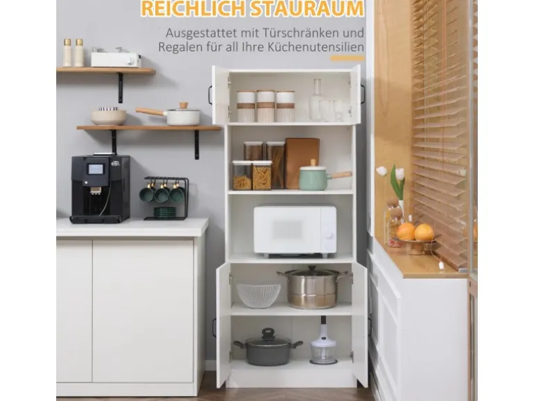 Mit diesem Aufbewahrungsschrank von HOMCOM gewinnen Sie jede Menge zusätzlichen Platz. Vorbei sind die Zeiten, in denen Töpfe und Pfannen übereinander gestapelt waren und man sie verschieben musste, um an den einen Topf ganz hinten zu kommen. Dieses Küchenbuffet bietet Ihnen den Platz, den Sie brauchen, um Ordnung zu halten und trotzdem alles leicht zu erreichen. Mit diesem Buffetschrank von HOMCOM haben Sie mehr Zeit zum Kochen und Unterhalten.