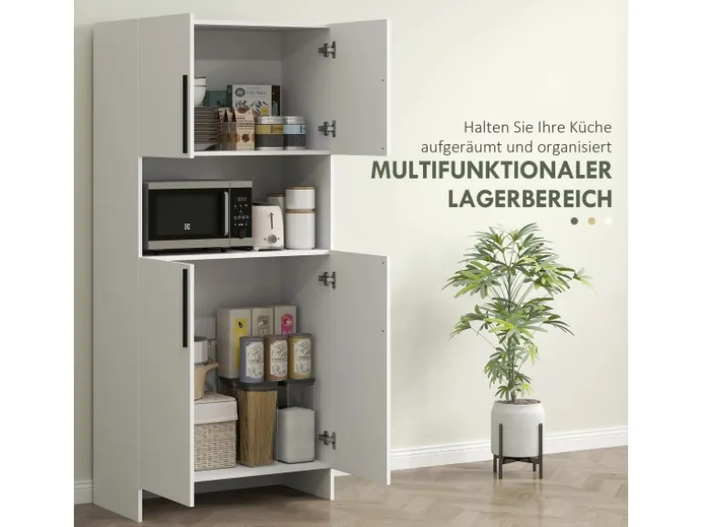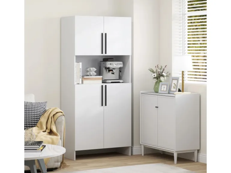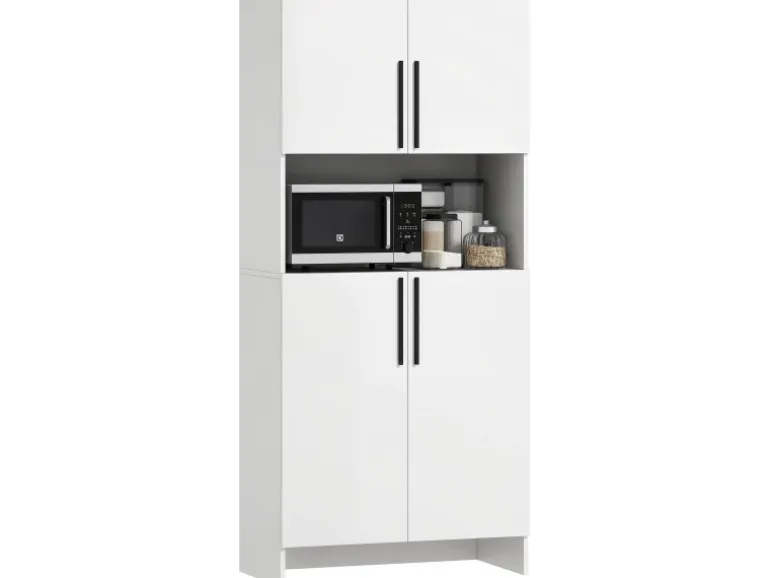 ● Saubere weiße Oberfläche und schwarze Griffe des Küchenbuffets passen zu verschiedenen Einrichtungsstilen