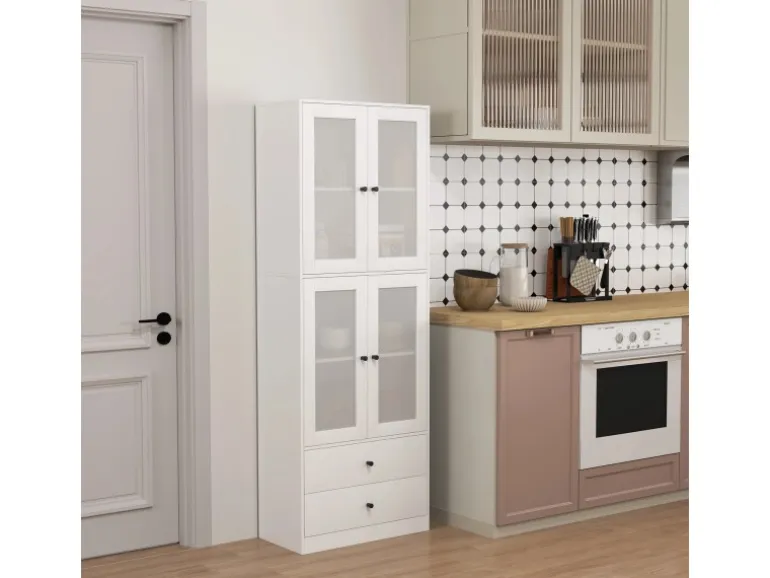 ● Zwei zweistufige Schränke und zwei geräumige Schubladen maximieren den Stauraum
