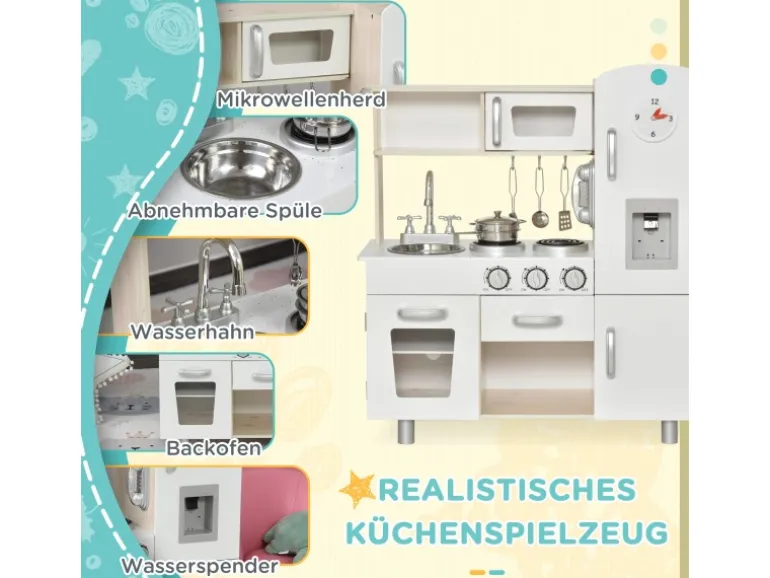 ● Ausgestattet die Kinderspielküche mit Spülbecken, Induktionsherd, Telefon und elektronischer Eismaschine
