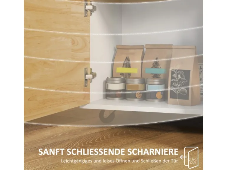 ● Die Tür des Küchenwagens mit Rollen mit Soft-Close-Funktion schließt leise und sanft, während Rillengriffe die Bedienung erleichtern