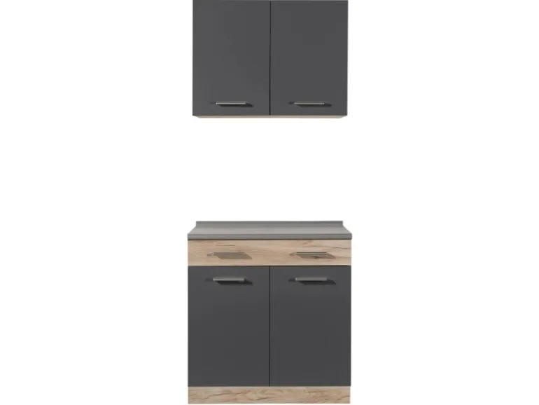 Küchenregale mit Arbeitsplatte im modernen, hochwertigen Design in Grau und Eichenholzoptik