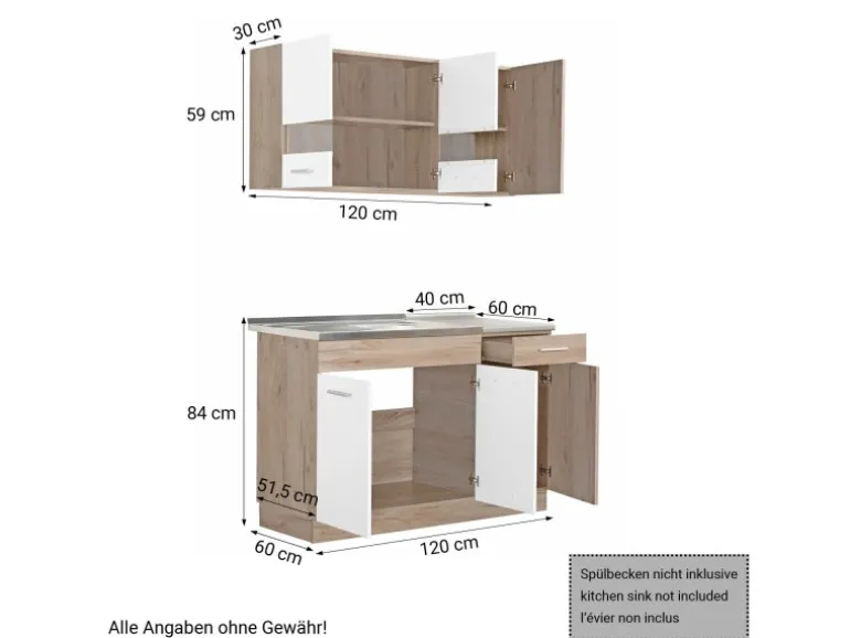 Außenmaße Unterschrank (BxHxT): 120 x 84 x 60 cm