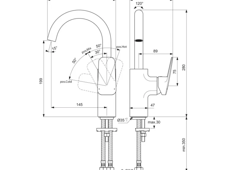 Ausgestattet mit der von Ideal Standard marktführenden und innovativen FirmaFlow®-Kartusche bietet die Armatur Ihnen außergewöhnliche Leistung in Sachen Haltbarkeit, Komfort und Kontrolle. Und das doppelt so lange wie der Industriestandard. Der eingebaute Durchflussbegrenzer kann hierbei den Wasserverbrauch von üblichen 9 l/min auf effiziente 5 l/min begrenzen, ohne die Leistung zu beeinträchtigen. Wirksamer Schutz vor Verbrühungen bietet Ihnen die bereits integrierte Heißwassertemperaturkontrolle. Diese kann vom Installateur individuell auf Ihr Bedürfnis voreingestellt werden und ist daher besonders für gefährdete Nutzer ideal. Durch den um bis zu 360° schwenkbaren Auslauf liefert die Armatur Ihnen zudem einen unfassbaren Komfort, der sich individuell Ihrem Bedürfnis anpasst.