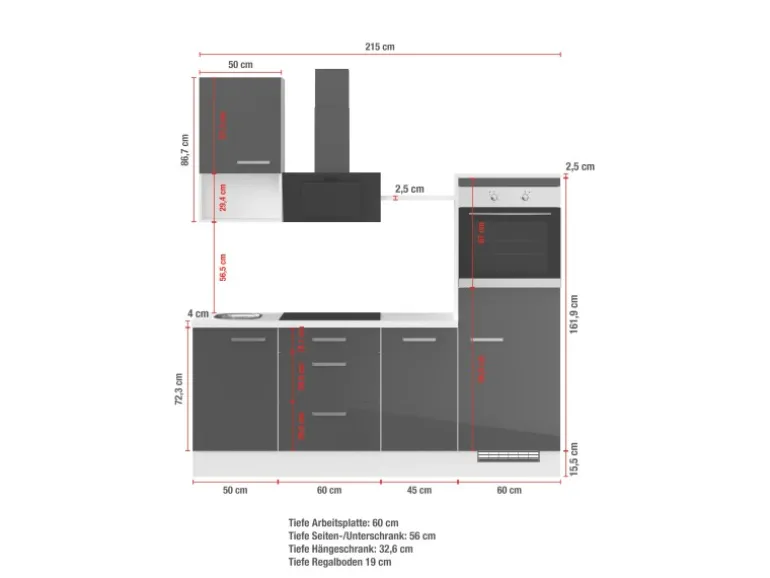 1 Unterschrank für Kochmulde 60×72,3×58 cm
