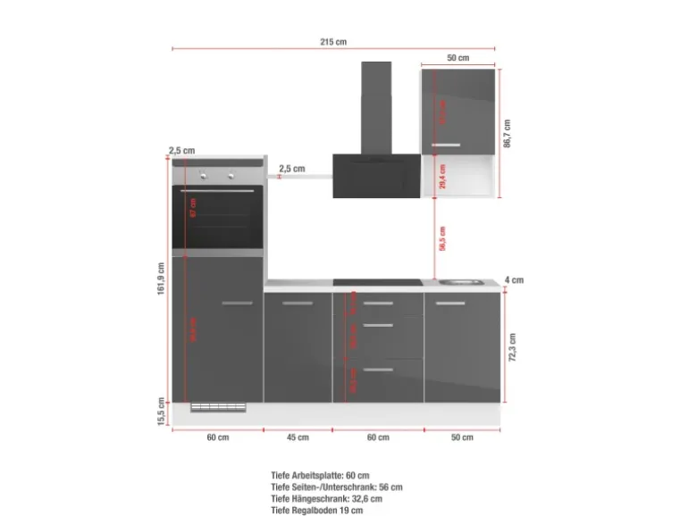 Vormontierte Küchenzeile mit Soft-Close-Funktion