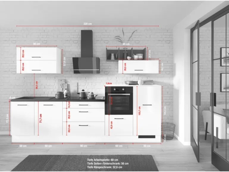 Vormontierte Küchenzeile mit Soft-Close-Funktion