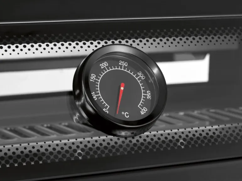 Überzeuge dich von der durchdachten Ausstattung des Jamestown Knox Masterclass Grills. Die Haube ist wärmeisoliert und verfügt über ein praktisches Sichtfenster sowie ein integriertes Thermometer, damit du den Garvorgang deines Grillguts jederzeit im Blick behältst, ohne unnötig Wärme entweichen zu lassen. Die Piezo-Zündung der Brenner garantiert dir ein schnelles und sicheres Starten des Grills.