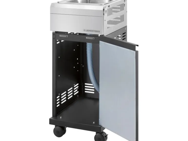 Entdecke die Knox Outdoor Spülenschrank Modulerweiterung für deinen Gasgrill der Jamestown Knox Familie (2/3/4/6 Brenner)! Dieses praktische Zubehör ermöglicht eine einfache und schnelle Fließendwassernutzung direkt neben deinem Grill. Die Montage erfolgt kinderleicht an deinem Gartenschlauch mit einer geeigneten Armatur (Armatur nicht enthalten). Der Spülenschrank verfügt über eine Ablaufgarnitur mit Überlauf und ein pflegeleichtes, strapazierfähiges Spülbecken aus rostfreiem Edelstahl. Der Unterschrank besteht aus langlebigem, pulverbeschichtetem Stahlblech. Der Türanschlag kann je nach Wunsch links oder rechts angebracht werden. Die großen, robusten Rollen mit Feststellbremse ermöglichen eine einfache Fixierung des Schranks. Der Spülenschrank ist somit als Teil deiner individuellen Grill-Kombination oder auch einzeln nutzbar. Mit der Knox Outdoor Spülenschrank Modulerweiterung wird das Grillen zum absoluten Vergnügen!