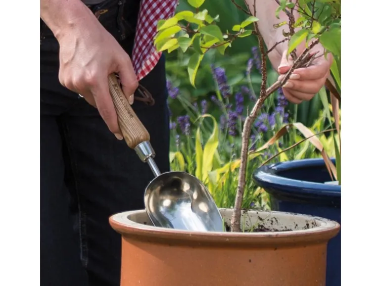 Die Kent & Stowe Pflanzschaufel ist dank der großen Aufnahmekapazität ideal für das Befüllen von Töpfen, Kübeln und Blumenampeln mit Blumenerde geeignet.