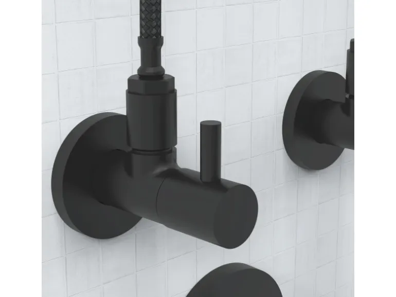 Das hochwertige Eckventil wird als Komplettset inklusive Wandrosette geliefert