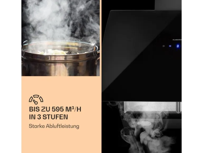 Klarstein Annabelle 60 Dunstabzugshaube Glas 595 m³/h Touch-Armatur Schwarz