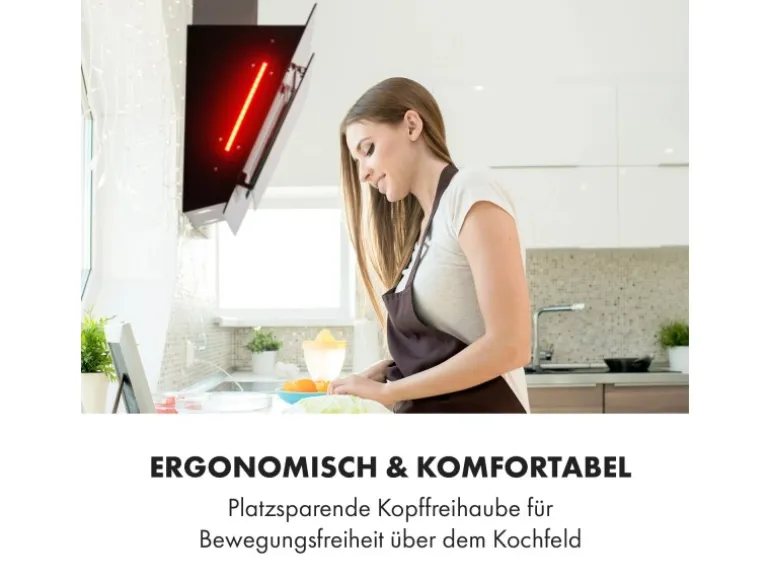 Ergonomisch & komfortabel: platzsparende Kopffreihaube für Bewegungsfreiheit über dem Kochfeld