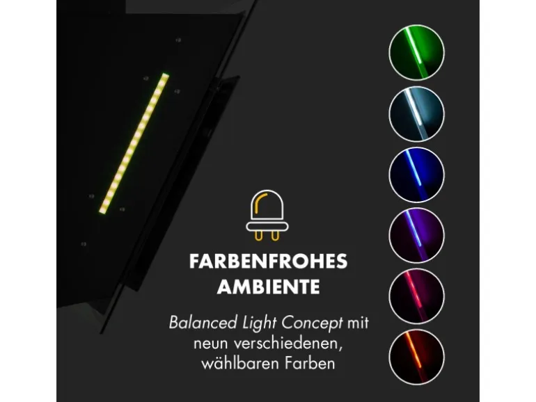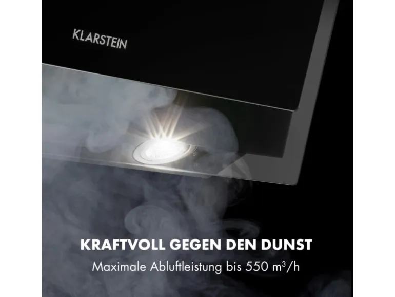 Klarstein Mirage 60 Dunstabzugshaube 550m³/h Touch-Panel RGB-Ambiente-Licht Glas Schwarz