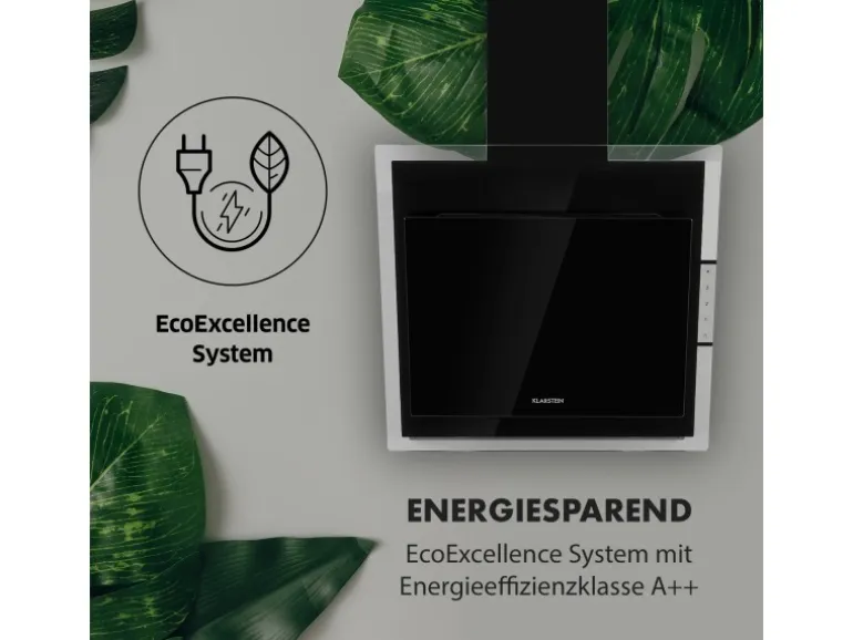 Jetzt kommt Glanz und Stimmung in die Küche – und ganz nebenbei beseitigt die Klarstein Mirage 60 Dunstabzugshaube auch Dampf und Essensgerüche. Die Mirage 60 Dunstabzugshaube macht kurzen Prozess mit Dunst und Brodel über der Kochstelle. Mit drei Leistungsstufen wird ihre Arbeitsleistung unkompliziert an das Kochgeschehen angepasst. Auf höchster Leistungsstufe befördert sie 550 m³/h Abluft aus der Küche und wird auch mit der Zubereitung mehrerer Gänge fertig. Dank modernster Technik halten sich dabei Geräuschaufkommen und Energieverbrauch im angenehm niedrigen Bereich mit gerade einmal 63 dB und Energieeffizienzklasse A++. Besonderen Reiz erlangt die Klarstein Mirage 60 Dunstabzugshaube nicht nur durch ihr edles, gläsernes Äußeres, sondern auch durch ihre zuschaltbare Ambiente-Beleuchtung mit neun unterschiedlichen RGB-Farben. So verleiht die kopffreie Wandabzugshaube jeder Küchenzeile ihre eigene Stimmung. Zusätzlich sorgen zwei weiße LED-Kochflächenlampen für einen jederzeit ungetrübten Blick in Pfannen und Töpfe. Besonderes Augenmerk verdient außerdem das ClearTouch Control-Panel, dass sich im rechten gläsernen Rand der Haube verbirgt und mit seinen transparenten Sensorfeldern fast unsichtbar die Funktionen der Haube dirigiert. Alles nötige Material zur Wandmontage sowie die passende Kaminverblendung sind im Lieferumfang enthalten. Mit Hilfe zweier Aktivkohlefilter (Artikel 10032843) kann die Haube auch vollkommen unkompliziert auf Umluftbetrieb umgerüstet werden. Edler Luxus für die Küche: Mit der Klarstein Mirage 60 Dunstabzugshaube erhalten Kochfelder einen stimmungsvollen Glanzpunkt und Küchen klare Luft.