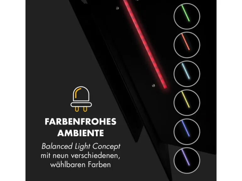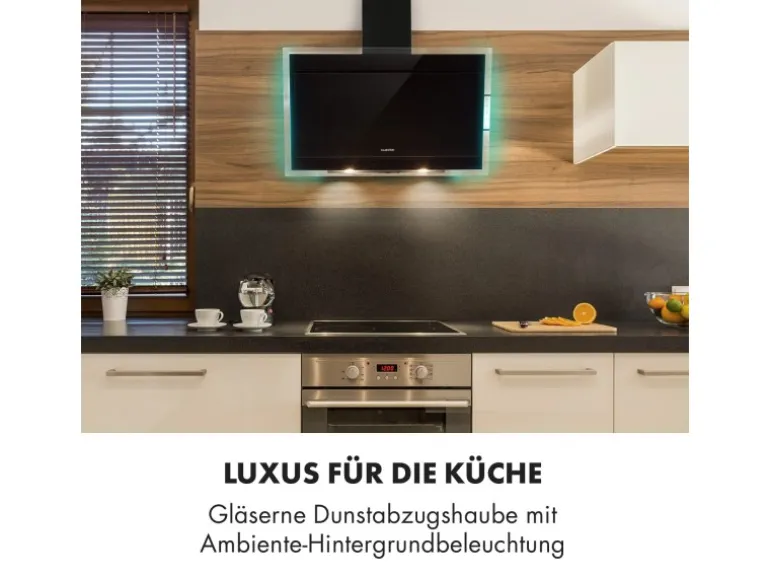 Klarstein Mirage 90 Dunstabzugshaube 550 m³/h Touch-Panel RGB-Ambiente-Licht A++ Schwarz