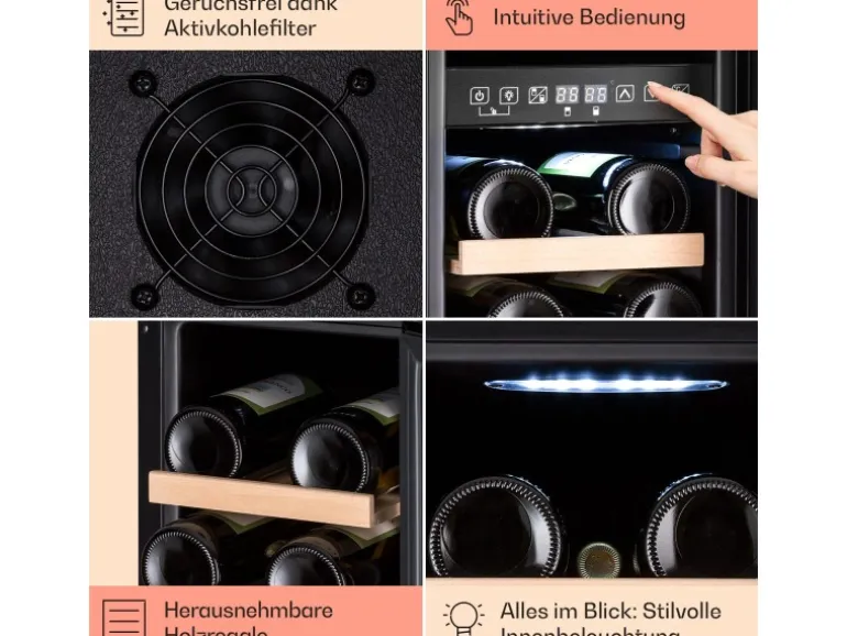 Klarstein Vinovilla Victoria 17 Duo Weinkühlschrank 2 Kühlzonen Touch 17 Flaschen 4 Regale
