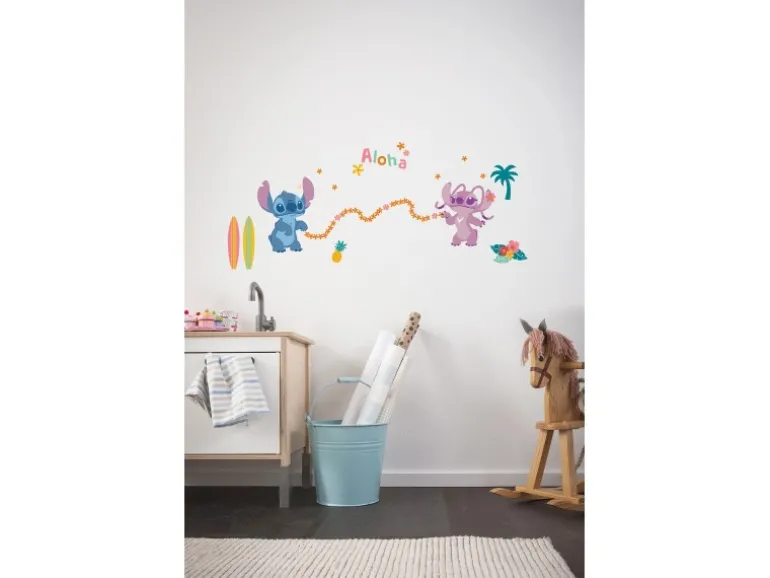 Die Komar Deko-Sticker Stitch Aloha bringen Freude in jedes Zuhause. Ob im Sammelalbum, am Fenster oder an der Wand, der aus 35 Einzelteilen bestehende, selbstklebende Aufkleber belebt graue Zimmerecken und lässt sich nach Belieben platzieren.