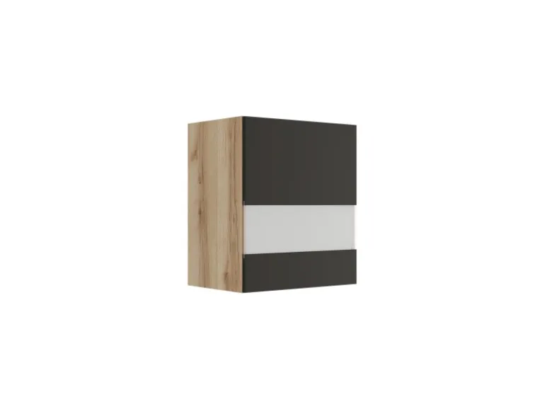 Dieser Oberschrank in Anthrazit-Wildeiche Nachbildung bietet Ihnen Staufläche auf zwei Ebenen. Durch die Segmentglastür kriegt Ihre Küche zudem einen besonderen Touch.